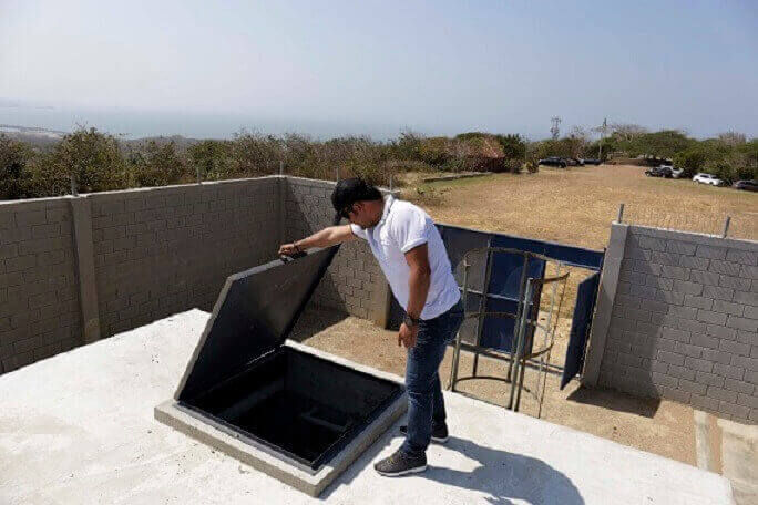 Desde esta estación se bombeará el preciado líquido hacia un tanque elevado de distribución que tiene capacidad de 35 metros cúbicos y se distribuirá por gravedad a las casas a través de redes de polietileno de alta densidad.